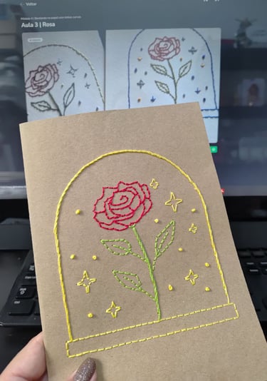 Aprenda do zero a técnica encantadora do bordado no papel e descubra como ela pode ser sua nova fonte de relaxamento, criatividade e até de renda extra — mesmo que você nunca tenha bordado antes.
